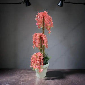 Elevate your dÊcor with the breathtaking beauty of our Triple Bloom Cascade, standing tall at 4 feet. This stunning floral arrangement features three beautifully layered tiers of soft, cascading pink blossoms, carefully crafted to resemble natural floral drapes. Designed for visual impact, each bloom cluster is thoughtfully spaced along a tall, upright trunk wrapped in a natural textured finish, giving it the appearance of a well-groomed indoor flowering tree.