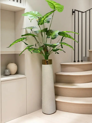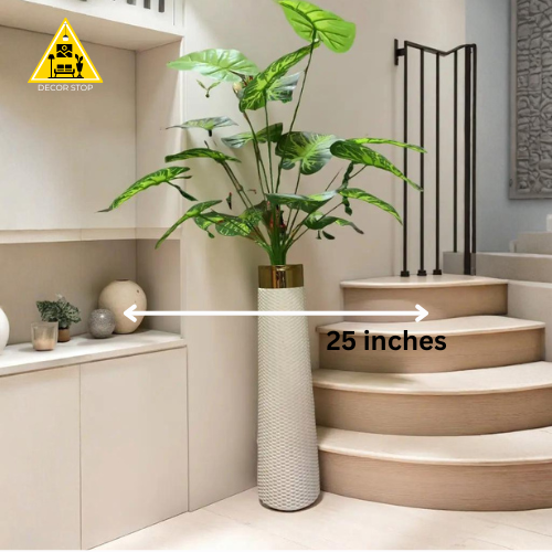 Elevate your space with the elegant Statement Greenery Tower, standing a graceful 4.5 feet tall. Designed to bring freshness, calm, and modern sophistication, this lush décor piece features lifelike green leaves displayed in a tall textured vase with a premium golden accent — a perfect blend of nature and luxury.
