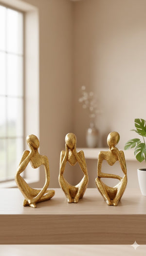 With delicate sculpted forms and smooth finishes, this 13 cm artistic trio adds depth and meaning to your living spaces, workstations, shelves, coffee tables, or study corners. The refined detailing captures the essence of thoughtfulness, elegance, and mindfulness, allowing it to resonate with anyone who appreciates art that inspires reflection and personal growth.