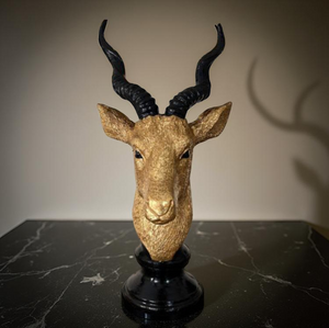Add a touch of regal sophistication to your décor with the Golden Noir Antelope Sculpture – Royal Horn Edition, crafted for those who appreciate bold elegance and timeless artistry. Featuring a beautifully sculpted golden antelope head with striking black twisted horns, this décor piece brings symbolism of grace, alertness, strength, and refined luxury into any space.
