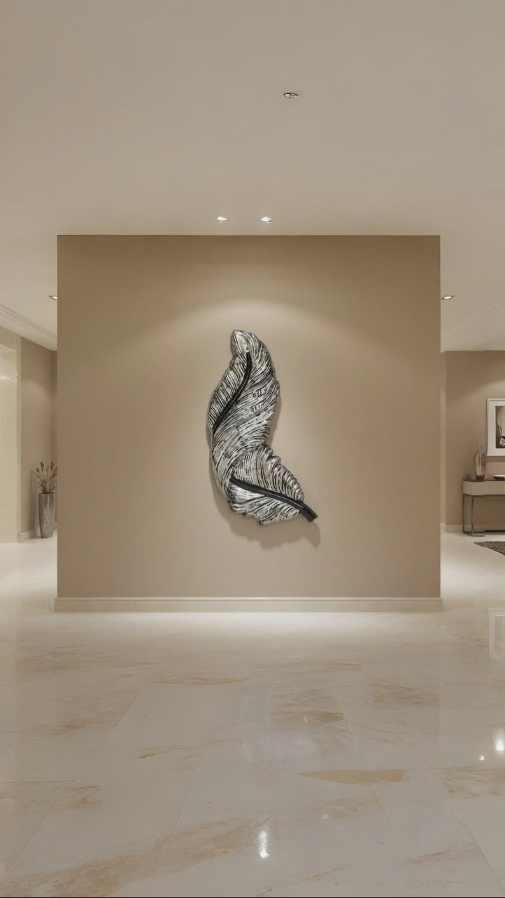 The feather’s brushed silver highlights, combined with its gentle LED aura, create a calm yet premium ambiance — ideal for modern homes that celebrate artistic refinement.