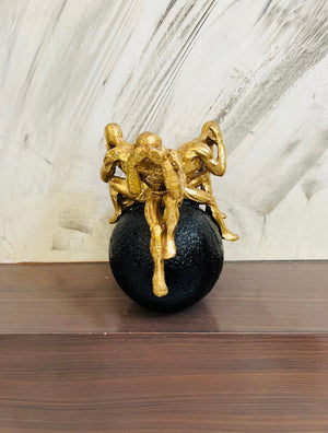 Hand-crafted with premium detailing, the gold finish highlights every curve, posture, and expression of the figures, while the matte-textured black sphere adds grounding elegance. This contrast makes the sculpture perfect for living rooms, offices, study tables, meditation corners, display shelves, and modern luxury interiors.